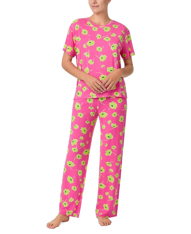 Ellen Tracy Women's Short Sleeve Cropped Pajama Set
