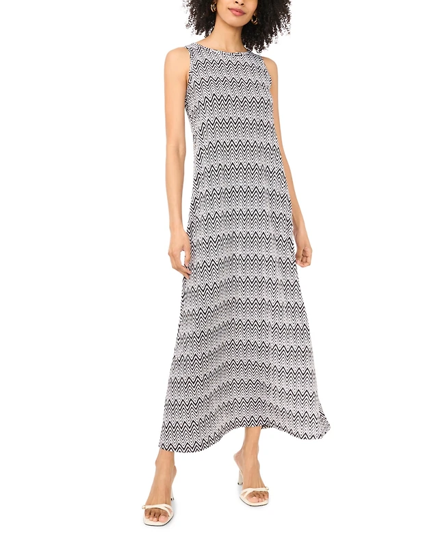 Vince Camuto Womens Printed Tie Neck Puff Sleeve Maxi Dress