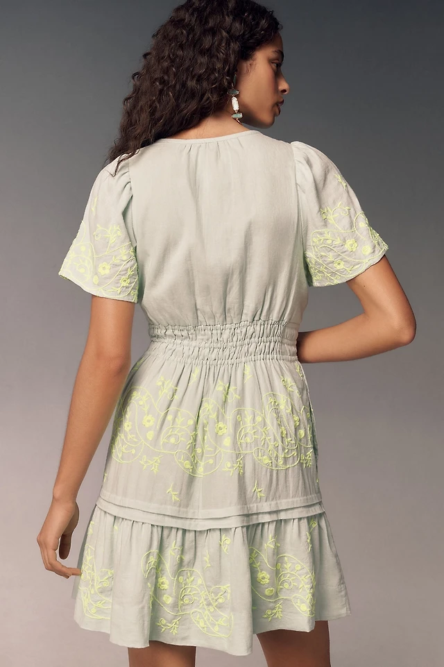 The Aly Embroidered Puff-Sleeve Mini Dress by Pilcro