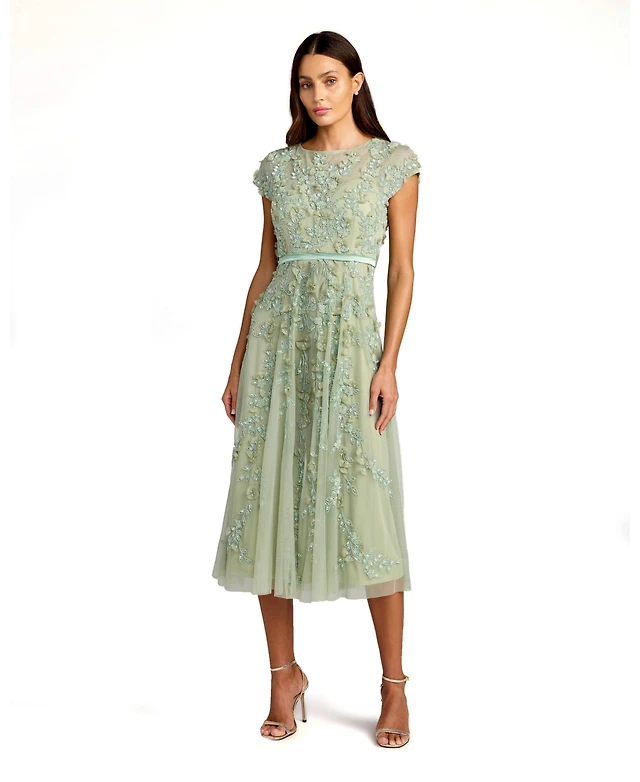 Ivonne Women's Short Beaded Cap Sleeve Dress with Round Neck