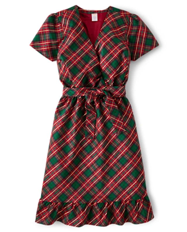 Womens Matching Family Plaid Dupioni Wrap Dress - A Royal Christmas