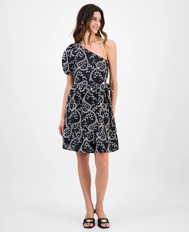 Ann Taylor Studio Collection One Shoulder Silk Dress Tropical Print Raspberry Truffle Women's