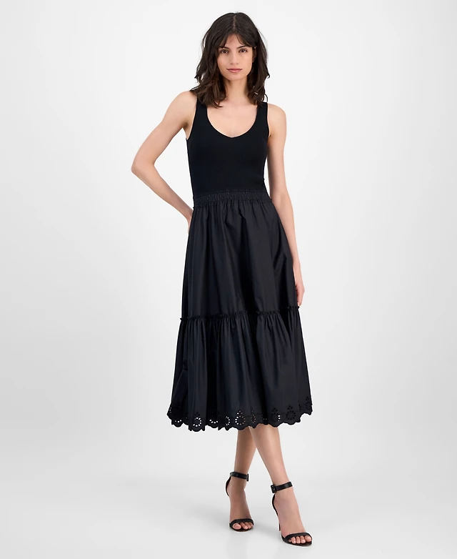Vince Camuto Women's Embroidered-Trim Square-Neck Smocked-Back Sleeveless Maxi Dress