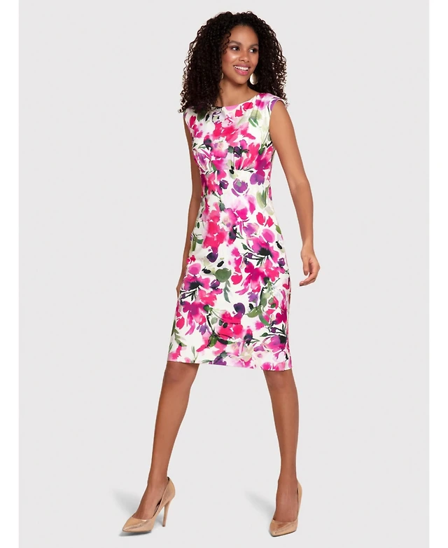 Halston Women's Plaid Sheath Short Sleeve Dress