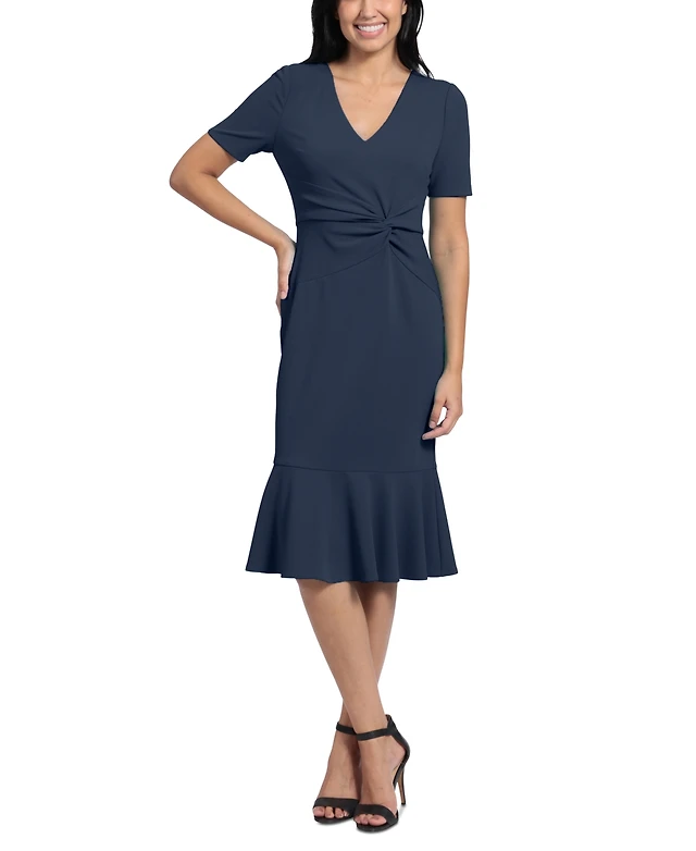 Siena Women's Ruched Side-Twist Sleeveless Midi Dress