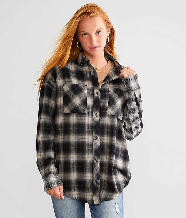 Plaid Flannel Button-Down Boyfriend Shirt