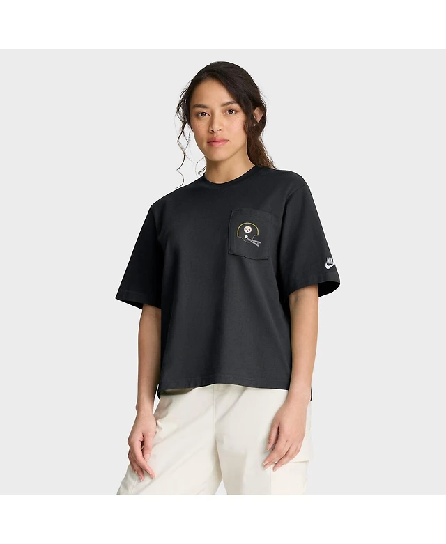 Nike Women's Black Pittsburgh Steelers Rewind Pocket Boxy T-Shirt