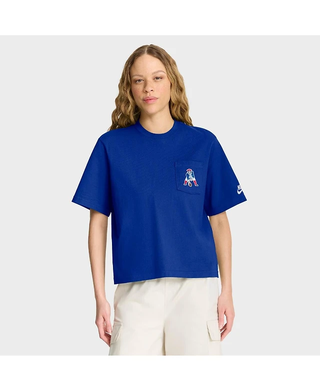 Nike Women's Navy New England Patriots Rewind Pocket Boxy T-Shirt