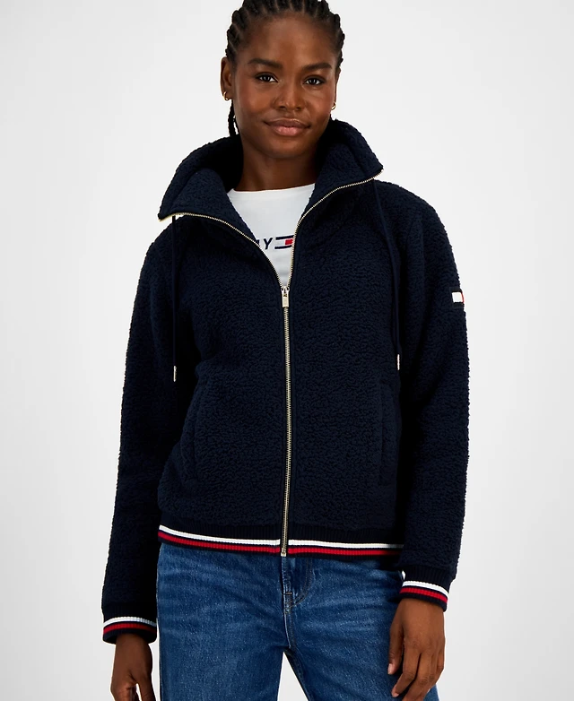 Cole Haan Women's Stand Collar Zip-Front Racer Jacket