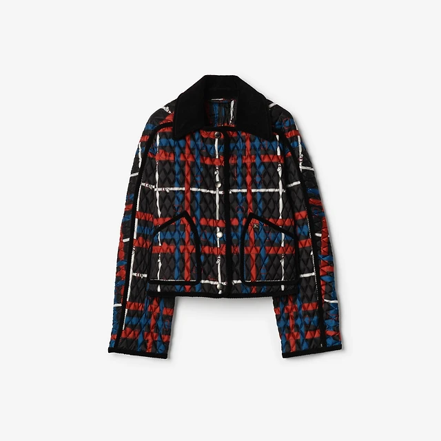 Cropped Belt Check Quilted Floriston Jacket in Petrol blue - Women, Wool | Burberry® Official