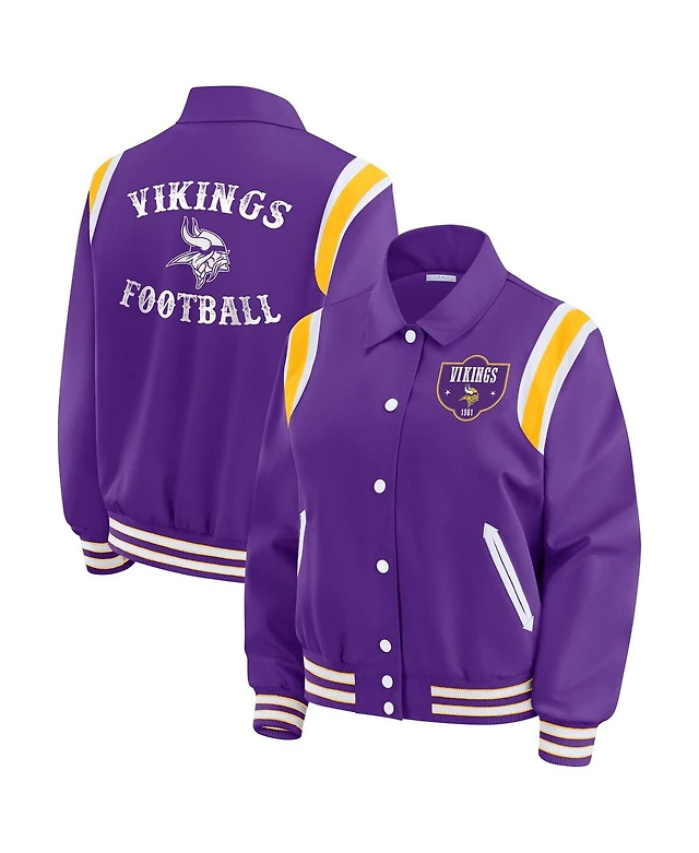 Wear by Erin Andrews Women's Purple Minnesota Vikings Varsity Full-Snap Puffer Jacket