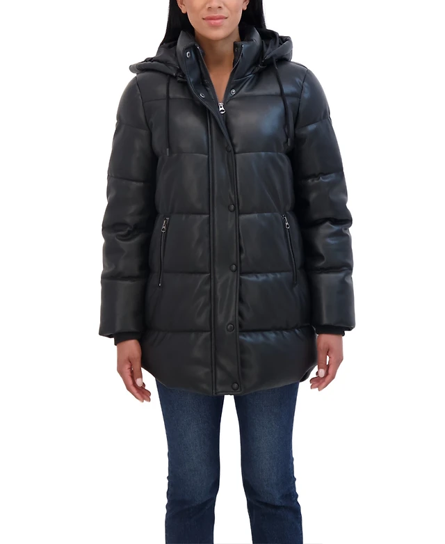 Kensie Women's Double Breasted Patch Pocket Faux Wool Jacket with Fringe