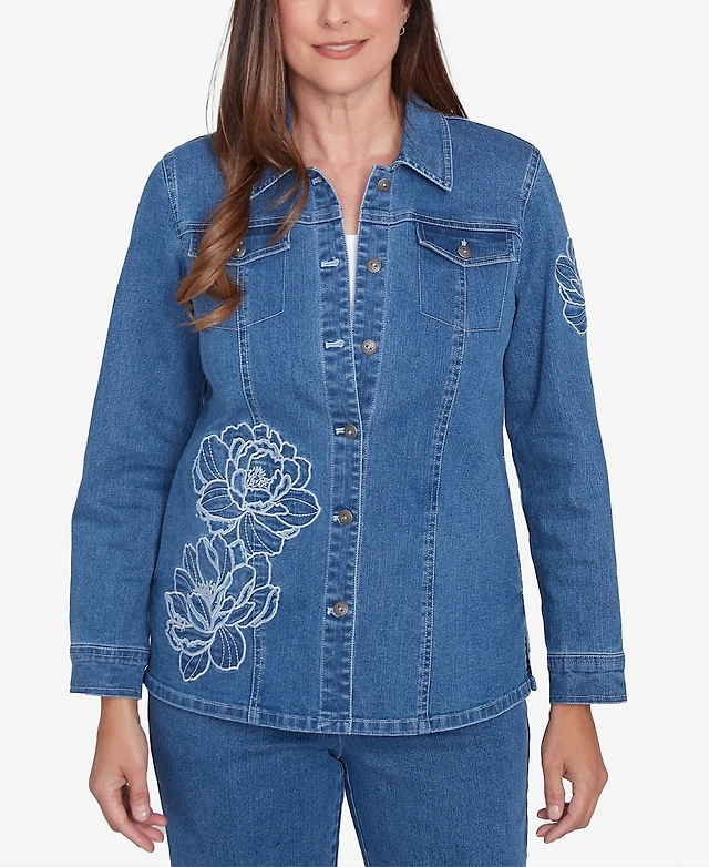 Alfred Dunner Women's Free Spirit Super Stretch Floral Denim Jacket