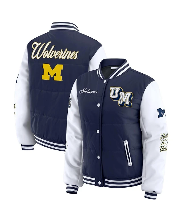 Wear by Erin Andrews Women's Navy Michigan Wolverines Varsity Puffer Jacket