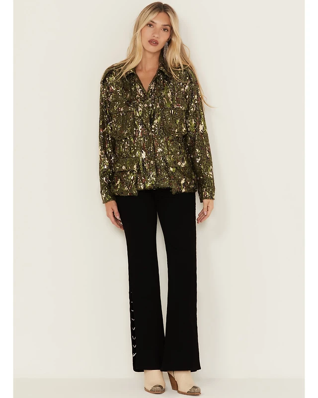 Avec Les Filles Women's Printed Cropped Trucker Jacket