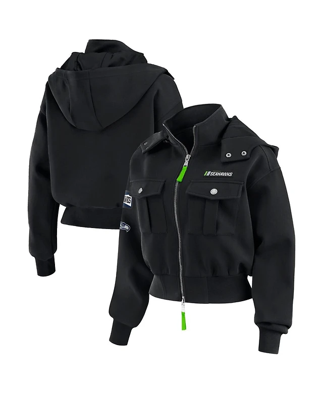Wear by Erin Andrews Women's Black Seattle Seahawks Patch Pocket Bomber Jacket