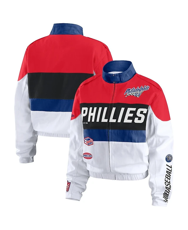 Wear by Erin Andrews Women's Red/White Philadelphia Phillies Racing Full-Zip Jacket