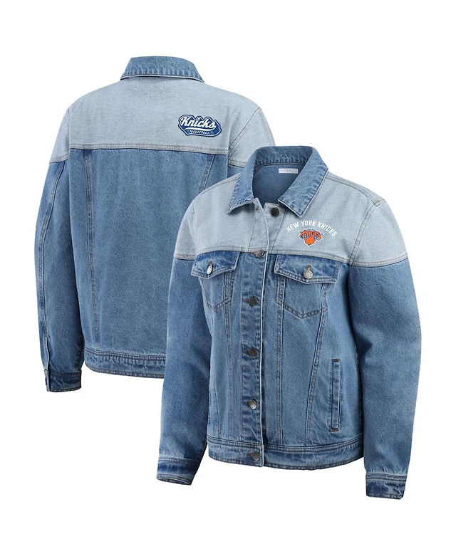 Wear by Erin Andrews Women's Blue New York Knicks Full-Button Denim Jacket