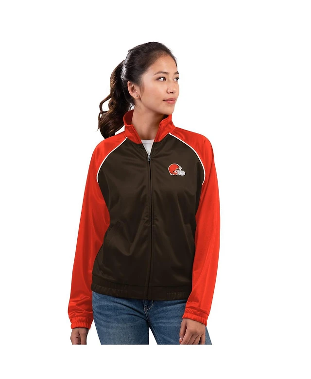 Women's Starter White Cleveland Browns Line Up Satin Full-Snap Varsity Jacket