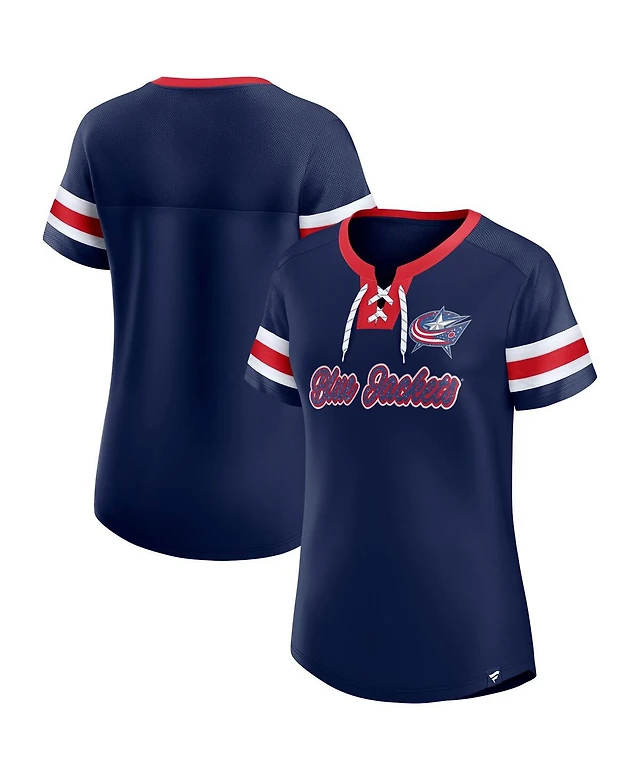 Fanatics Women's Navy Columbus Blue Jackets Iconic Athena Lace-Up T-Shirt