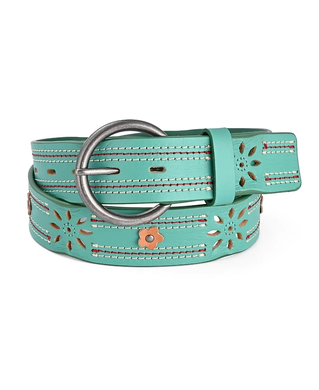 Catchfly Women's Floral Tooled Concho Leather Belt