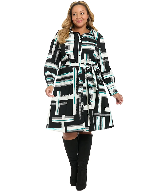 Karl Lagerfeld Paris Women's Printed Collared Belt Shirt Dress