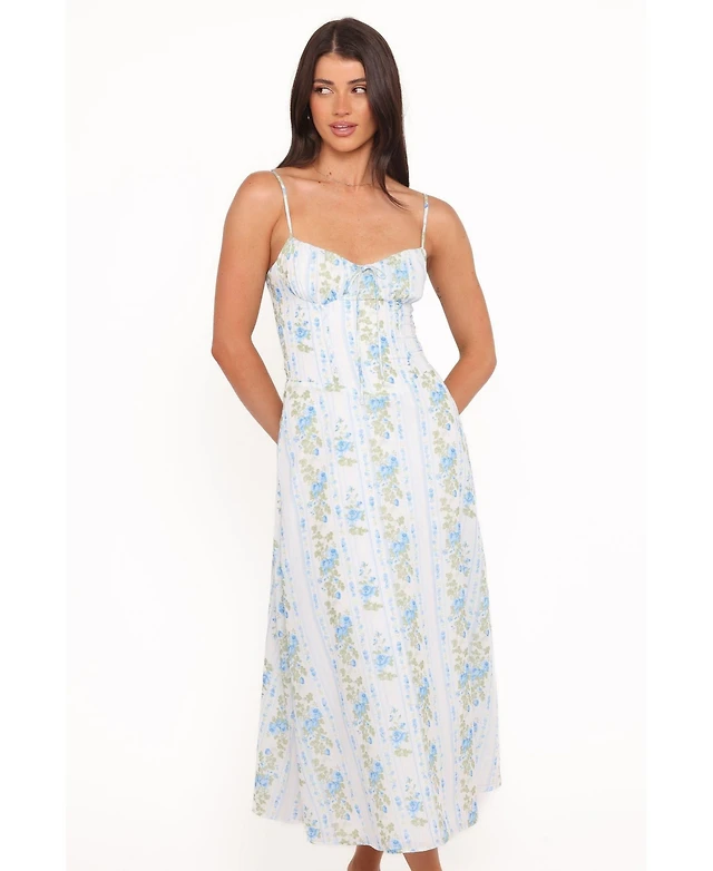 Ann Taylor Petite Weekend Floral Shirred Dress B Dream Blue Women's