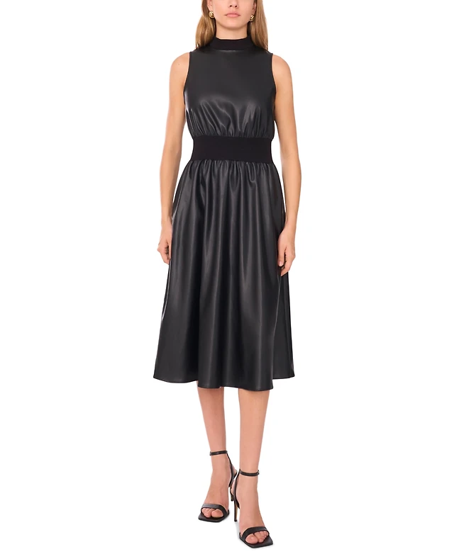 Adrianna Women's Pleated Mock Neck Ankle Dress