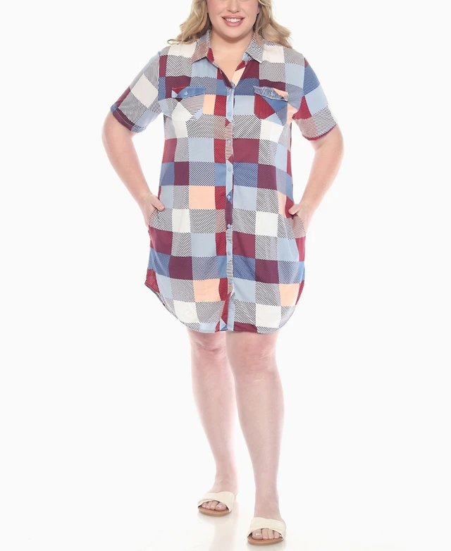 Standards & Practices Plus Size Puffed Sleeves Scoop Neck Midi Dress