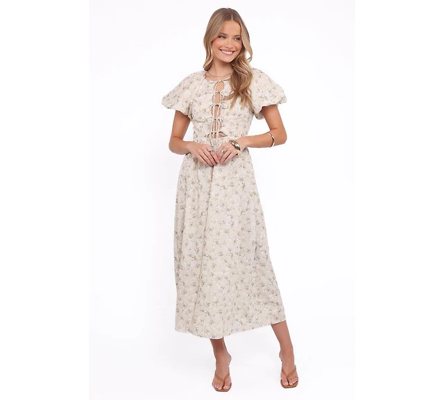 Petite Dotted Tie Linen Blend Strappy Midi Dress