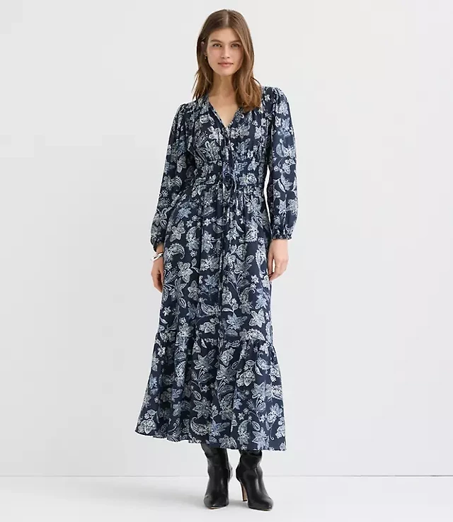 Lauren Ralph Women's Floral Print V-Neck Tiered Maxi Dress