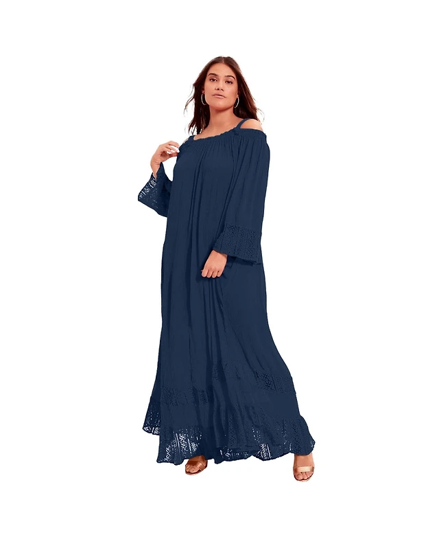 June & Vie Women's and Halter Eyelet Maxi Dress