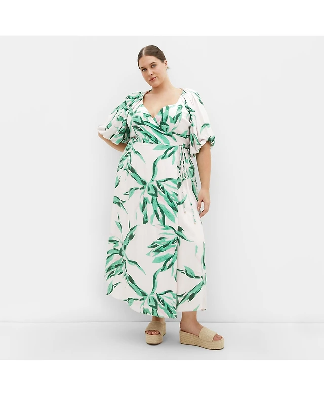 And Now This Trendy Plus Printed Puff-Sleeve Maxi Dress, Macy's Exclusive