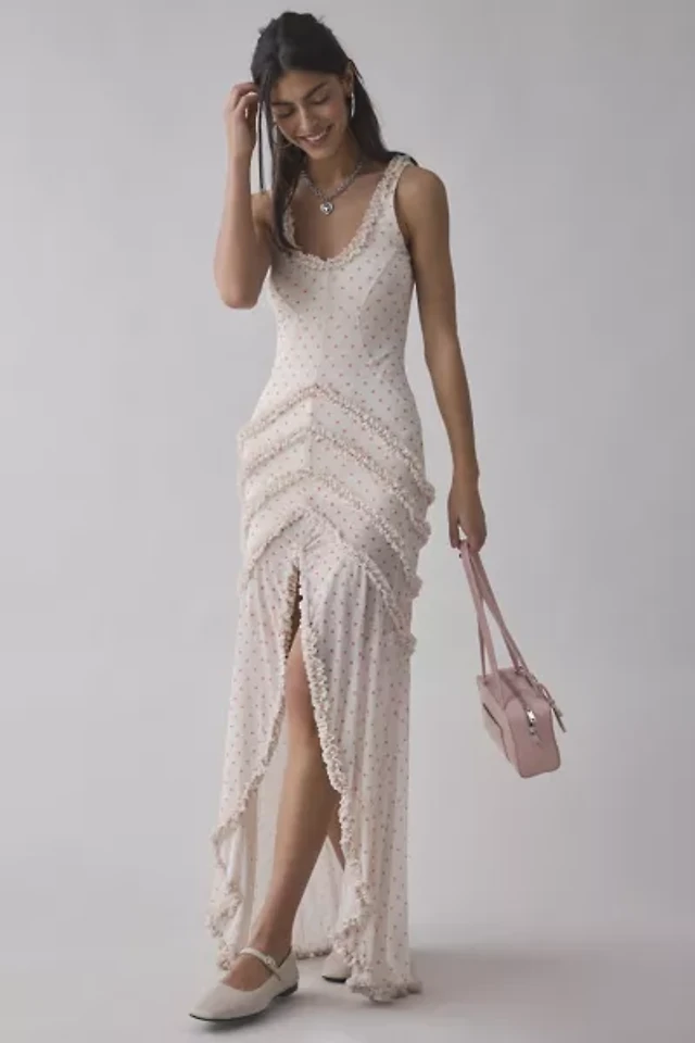 And Now This Women's Cotton Ruffled-Strap Swiss Dot Maxi Dress, Exclusively at Macy's