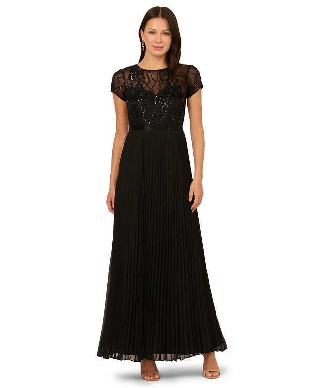 Adrainna Papell Women's Long-Sleeve Tuxedo Gown