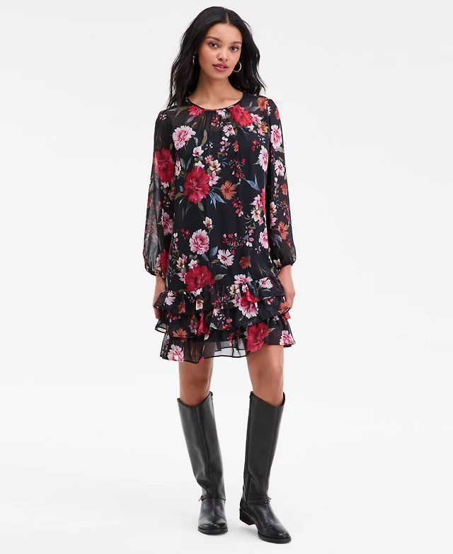 Dkny Women's Double Flutter Short-Sleeve Ruffle Hem Dress