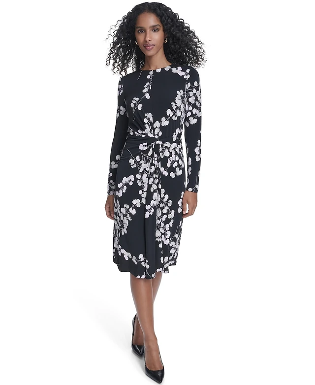 Adrianna Papell Women's Tie-Front 3/4-Sleeve Crepe Knit Dress