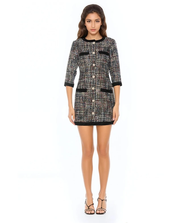 24seven Comfort Apparel Women's Keyhole Three Quarter Sleeve Mini Dress