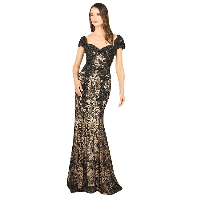 Dress the Population Women's Sequin Mesh Panel Erica Dress