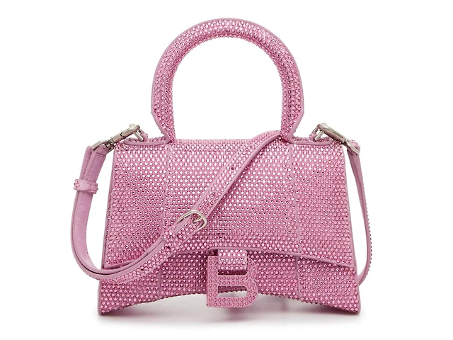 Round nappa leather bag with rhinestones
