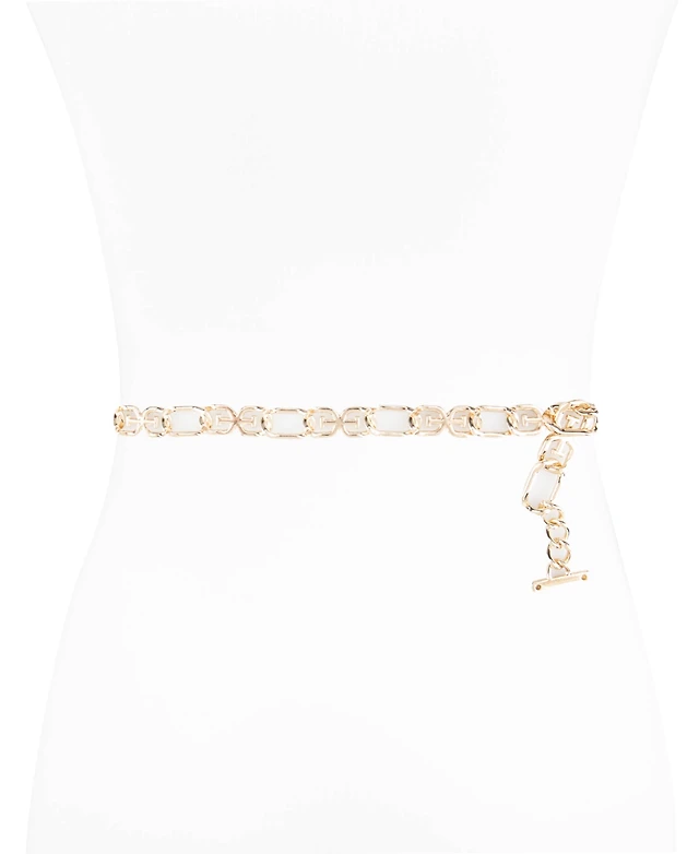 Sam Edelman Women's Imitated Pearl Embellished Double-e Plaque Buckle Belt