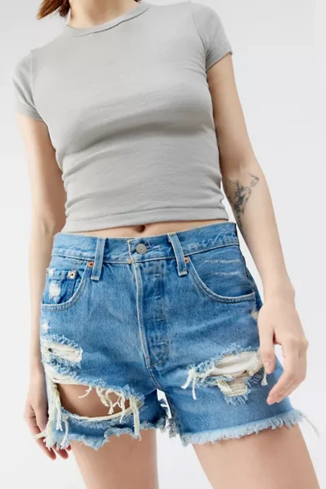 Levi's 501 Light Blue Frayed Denim Shorts