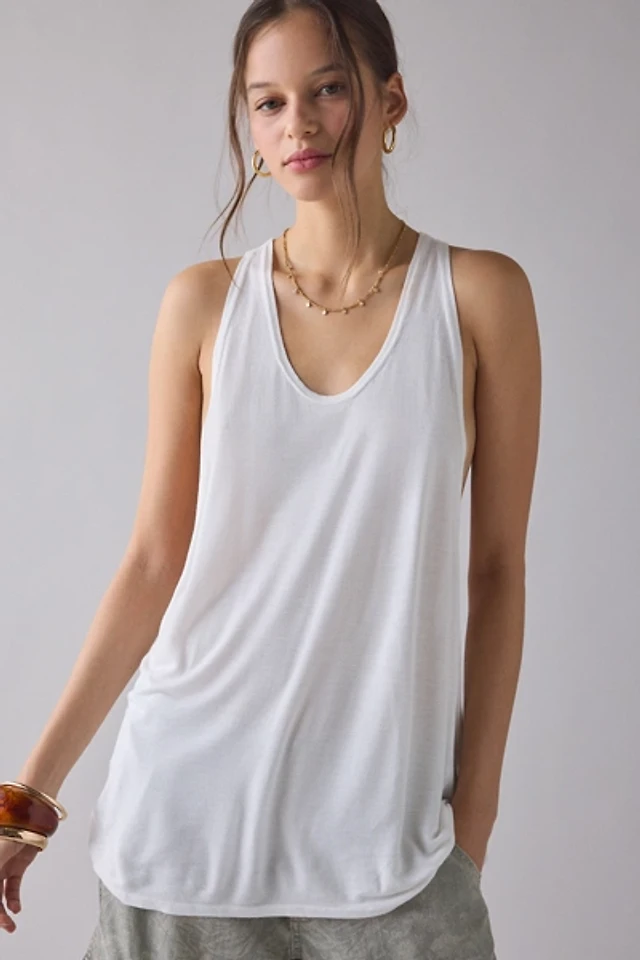Long Cotton Crewneck Tank Top
