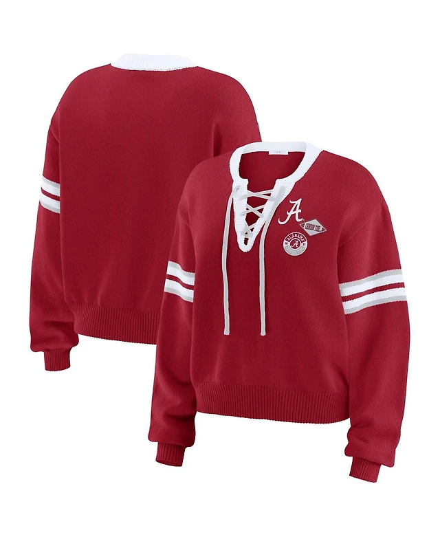Wear by Erin Andrews Women's Crimson Alabama Tide Lace-Up Pullover Sweater