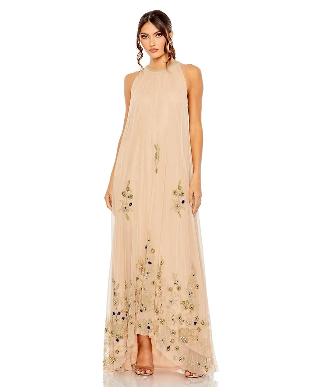 Eliza J Women's Embroidered Cuff Boat Neck Long Gown