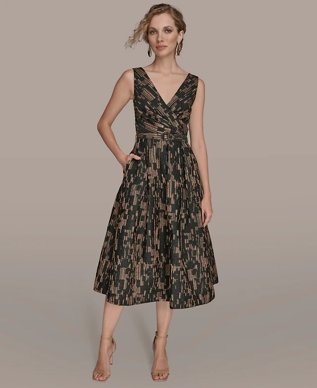 Tommy Hilfiger Women's V-Neck Tiered Hem Foil Midi Dress