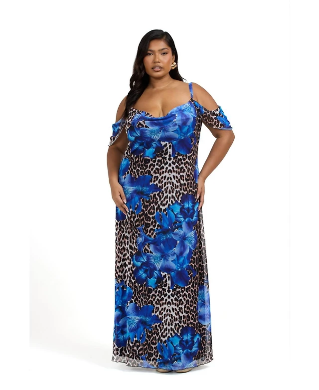 Fashion-szn Curve Women's Cowl Neck Long Sleeve Maxi Dress