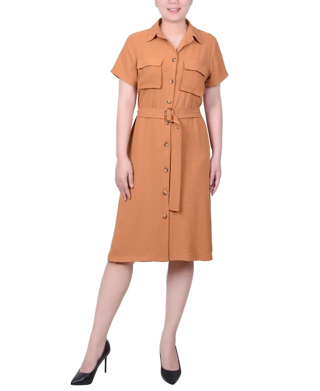 Ny Collection Women's Short Sleeve Belted Shirtdress
