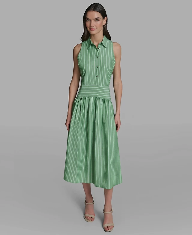 Donna Karan New York Women's Collared 3/4-Sleeve Midi Dress