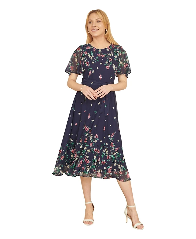 Warehouse Women's Ruffle Cold Shoulder Midi Dress